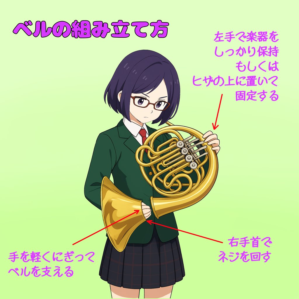 ホルンはどのように置くのが正しいか、見てみましょう。